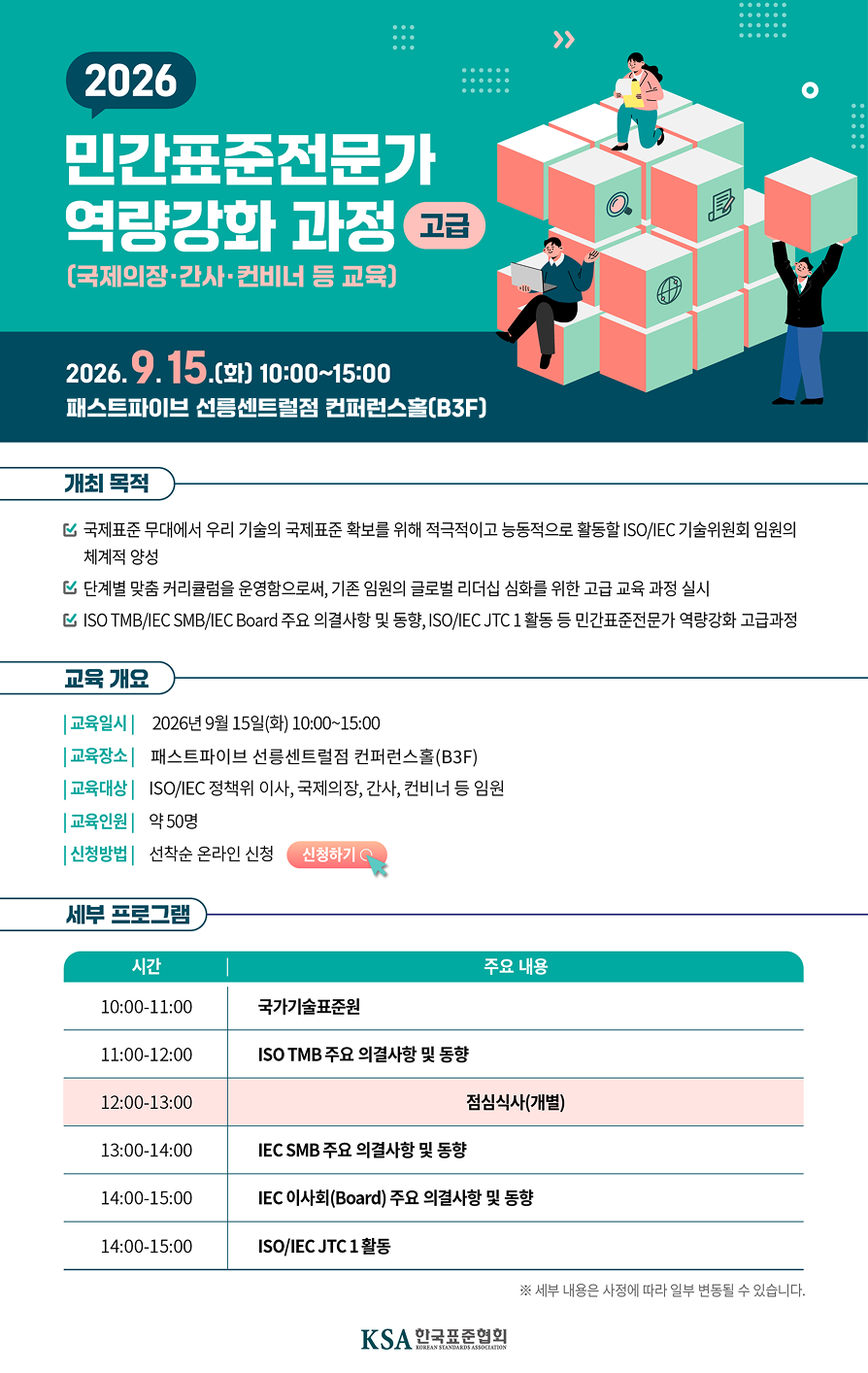 | 제목 | 교육 | 2026년 민간표준전문가 역량강화 과정(고급) 신청안내 | ||